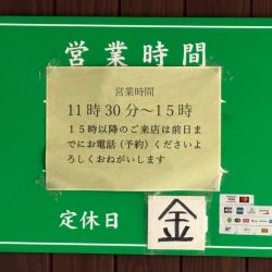 | 営業時間 | 11:30~15:00(ラストオーダー14:45)※15時以降のご来店は前日までにお電話(予約)ください。 |