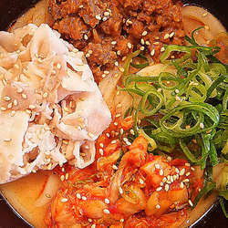 季節限定メニュー。商品説明によるとなか卯のだし汁にコチュジャンをベースに、海老ペーストとりんご果汁を加えた特製スープなんだそうですが、海老の風味は感じられず、キムチの味と酸味が前面に出たキムチスープと言った感じです。辛さレベル表記が2なので辛いのが苦手な人には向きません。正直、咳き込みましたw ですが、普通に美味しいのでご飯を追加してスープと一緒に食べるのもいいです。... 続きを見る