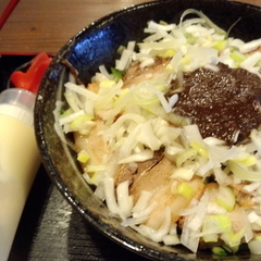 のぼりが気になっていたので、肉たまあんかけの並を注文。麺を湯がいて、餡、肉の順に乗せ、「タップリ生姜を乗せてお召し上がりください」ってことだったので、お勧めに従い生姜を多めにセルフトッピング。